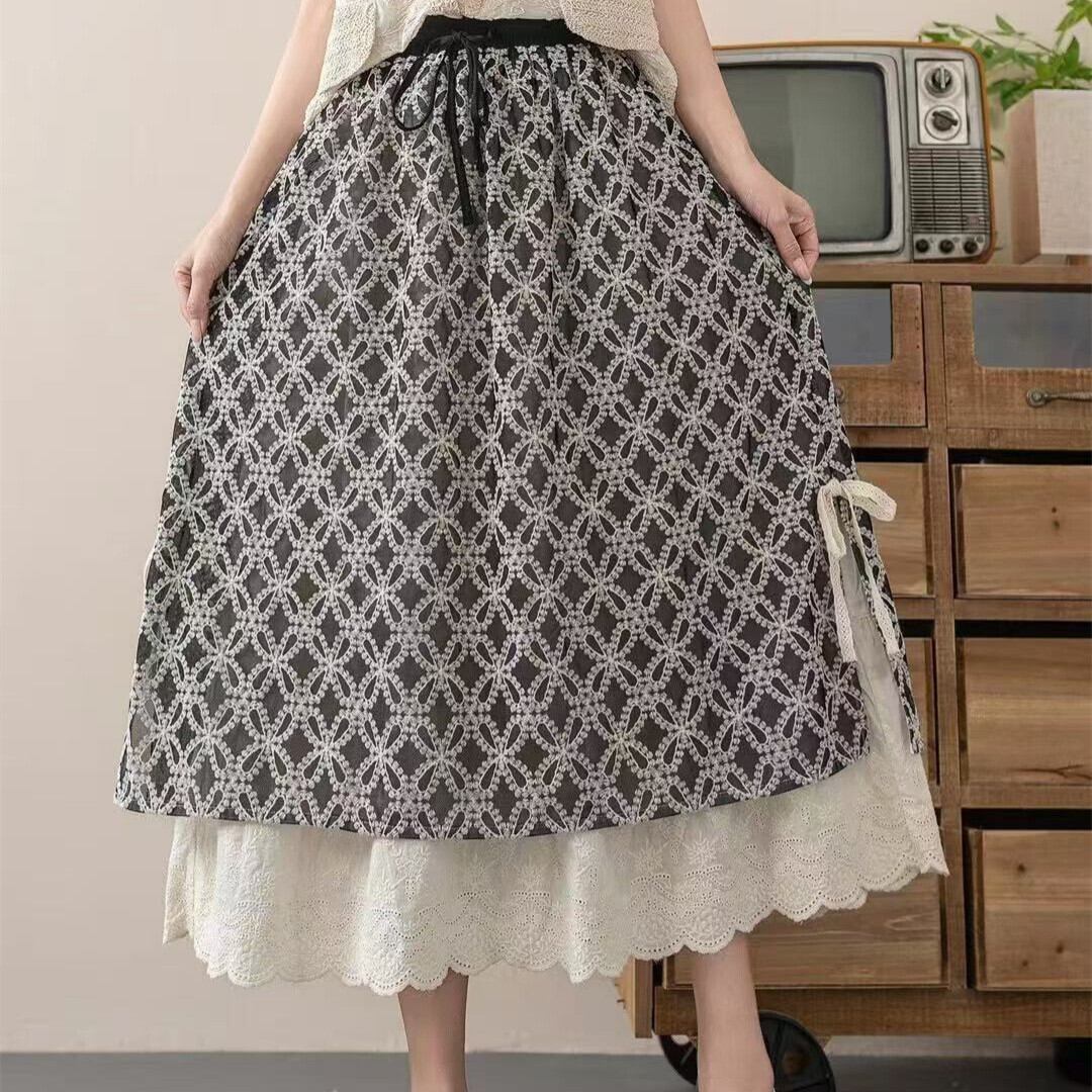 wq-654 切り替えレースデザインスカート カジュアルスカート 【2025新作】