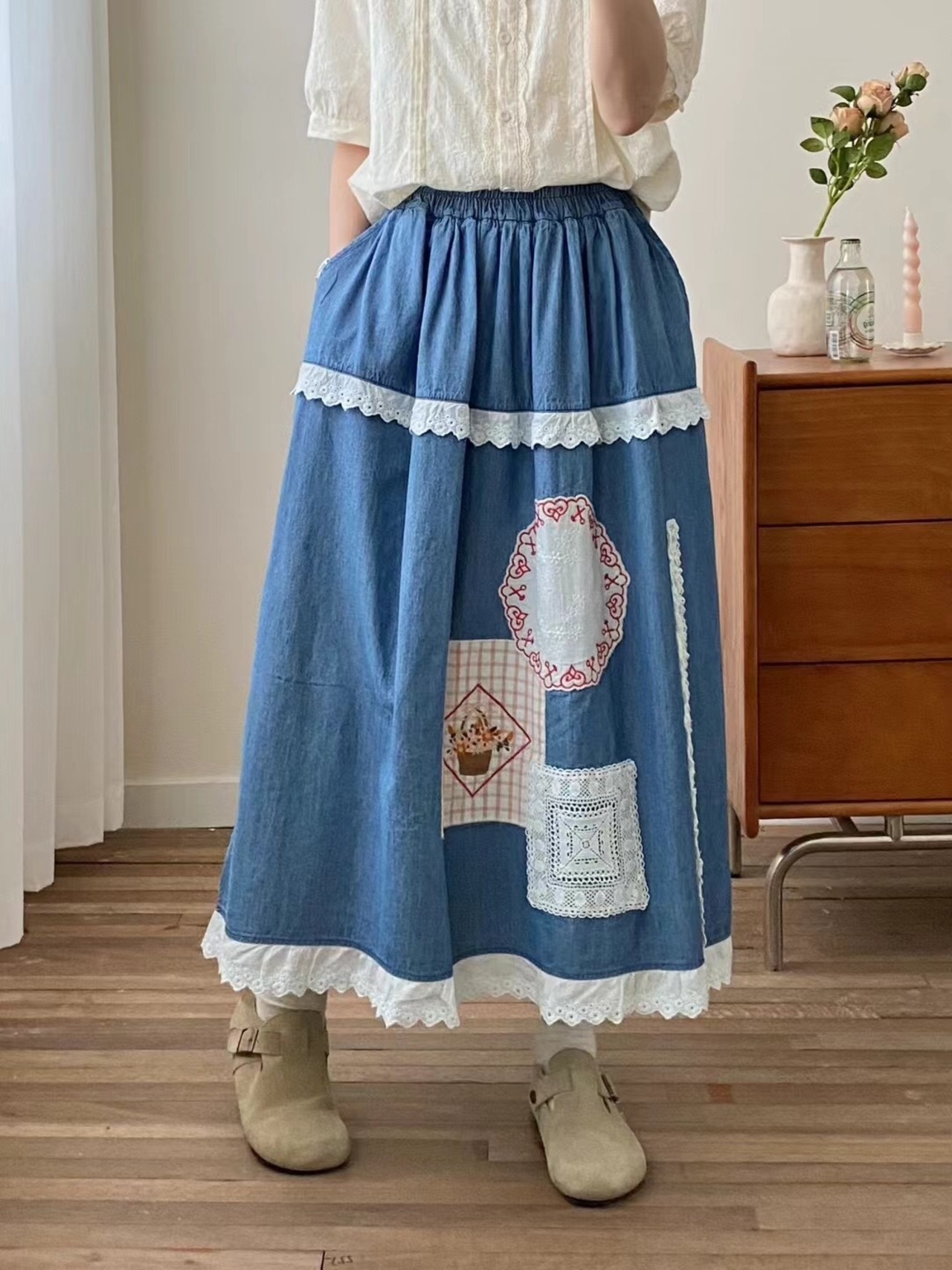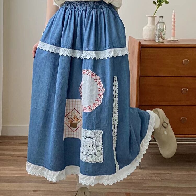 wq-669 レース切り替えデザインスカート カジュアルスカート 【2025新作】