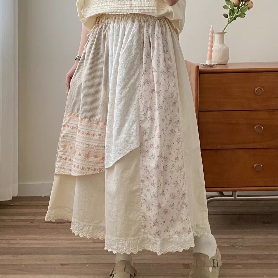 wq-667 花柄切り替えデザインスカート カジュアルスカート 【2025新作】