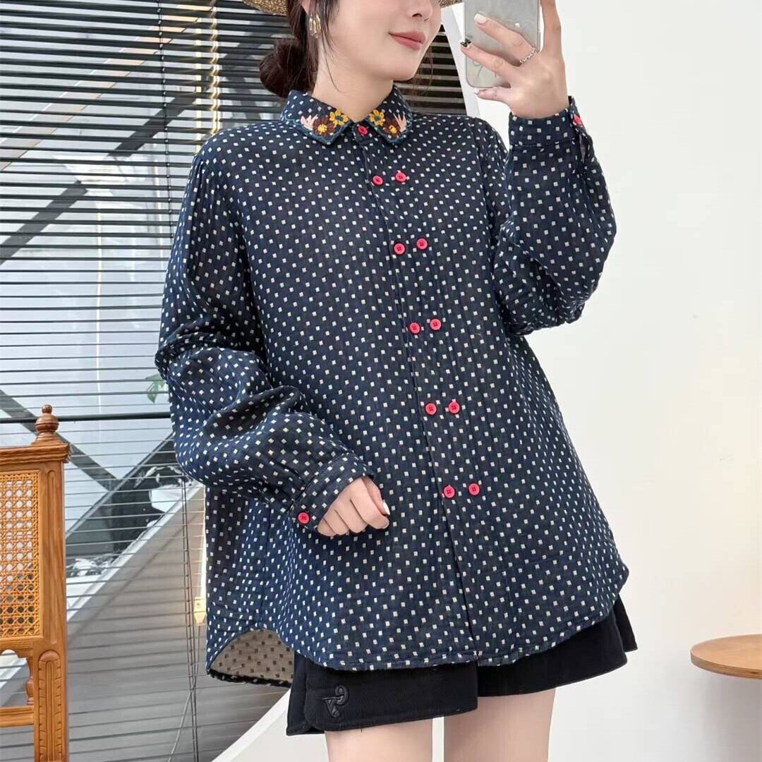 wcs-1646 ドットプリントデザイントップス長袖シャツ・ブラウス【2025秋新作】