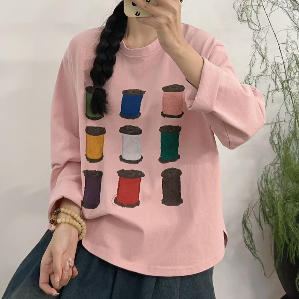 cc-634 花柄デザインTシャツ長袖トップス ブラウス【2025秋新作】