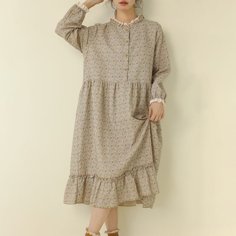 nl-1643 森ガール風 花柄 長袖ワンピースロングワンピース【2025秋新作】