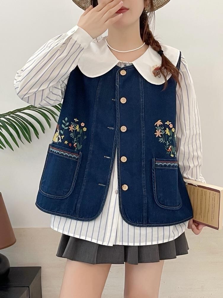 wb-404 刺繍デザインベストトップスカジュアル【2025秋新作】
