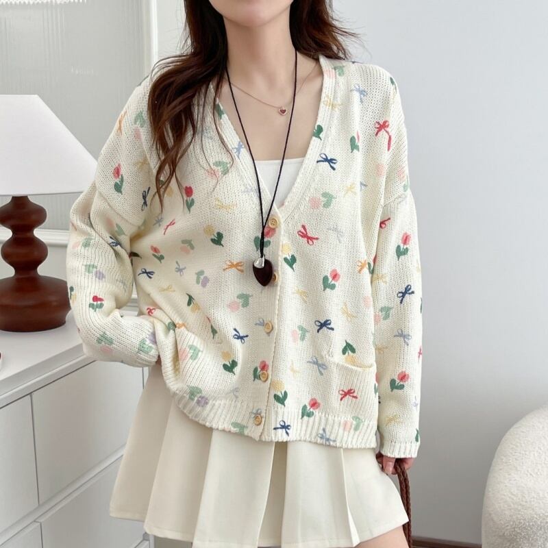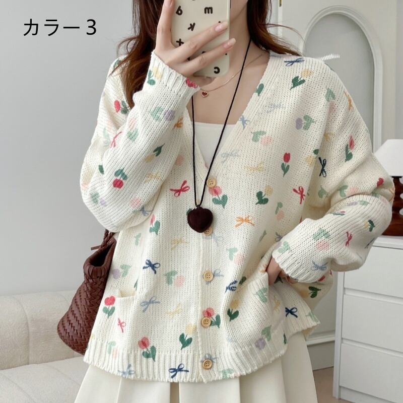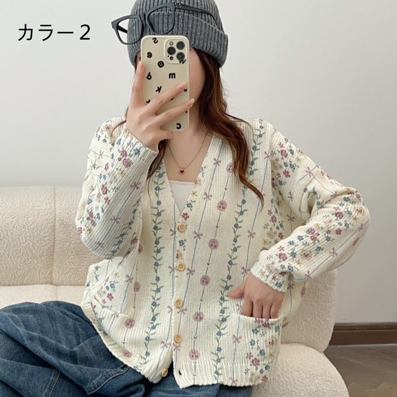 ks-302 花柄デザインニットコート カジュアル【2025秋冬新作】