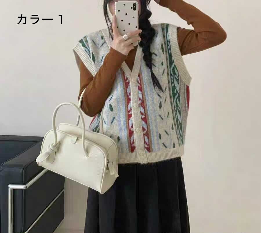 wb-408 Vネックデザインニットベストトップスカジュアル【2025秋新作】