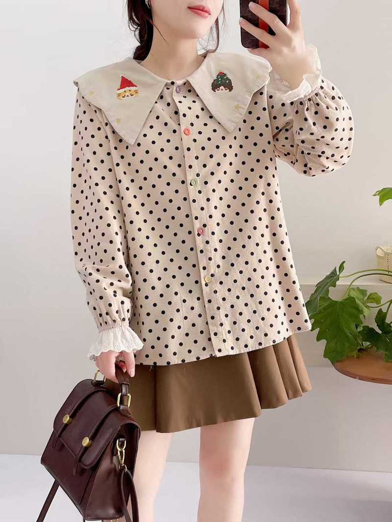 wcs-1717 刺繍デザインクリスマストップスシャツ・ブラウス【2025秋新作】