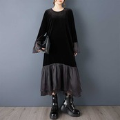 nl-1652 切り替えデザインワンピースロング丈ワンピース【2025秋新作】