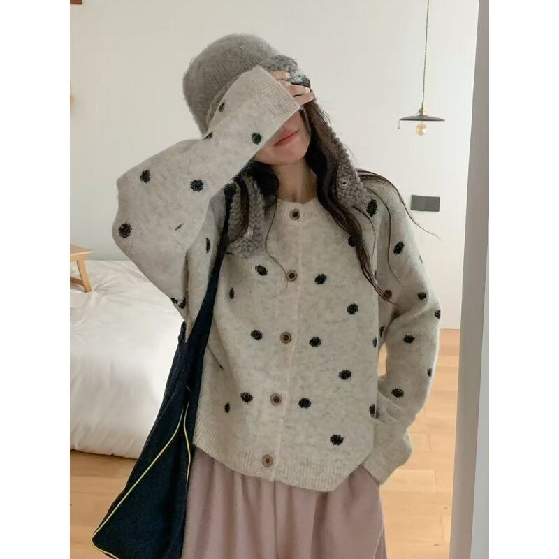 ks-306 ドットプリントデザインニットコート カジュアル【2025秋冬新作】