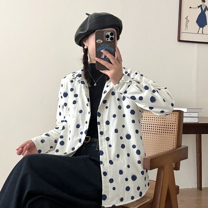 wm-155 秋冬ドットプリントデザインコートトップス アウター暖かいカジュアル