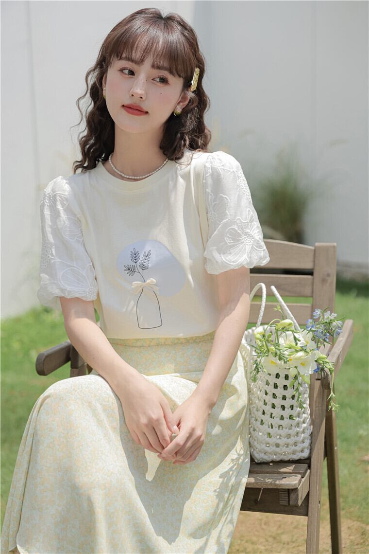 cc-638 花柄デザインTシャツ長袖トップス ブラウス【2026新作】