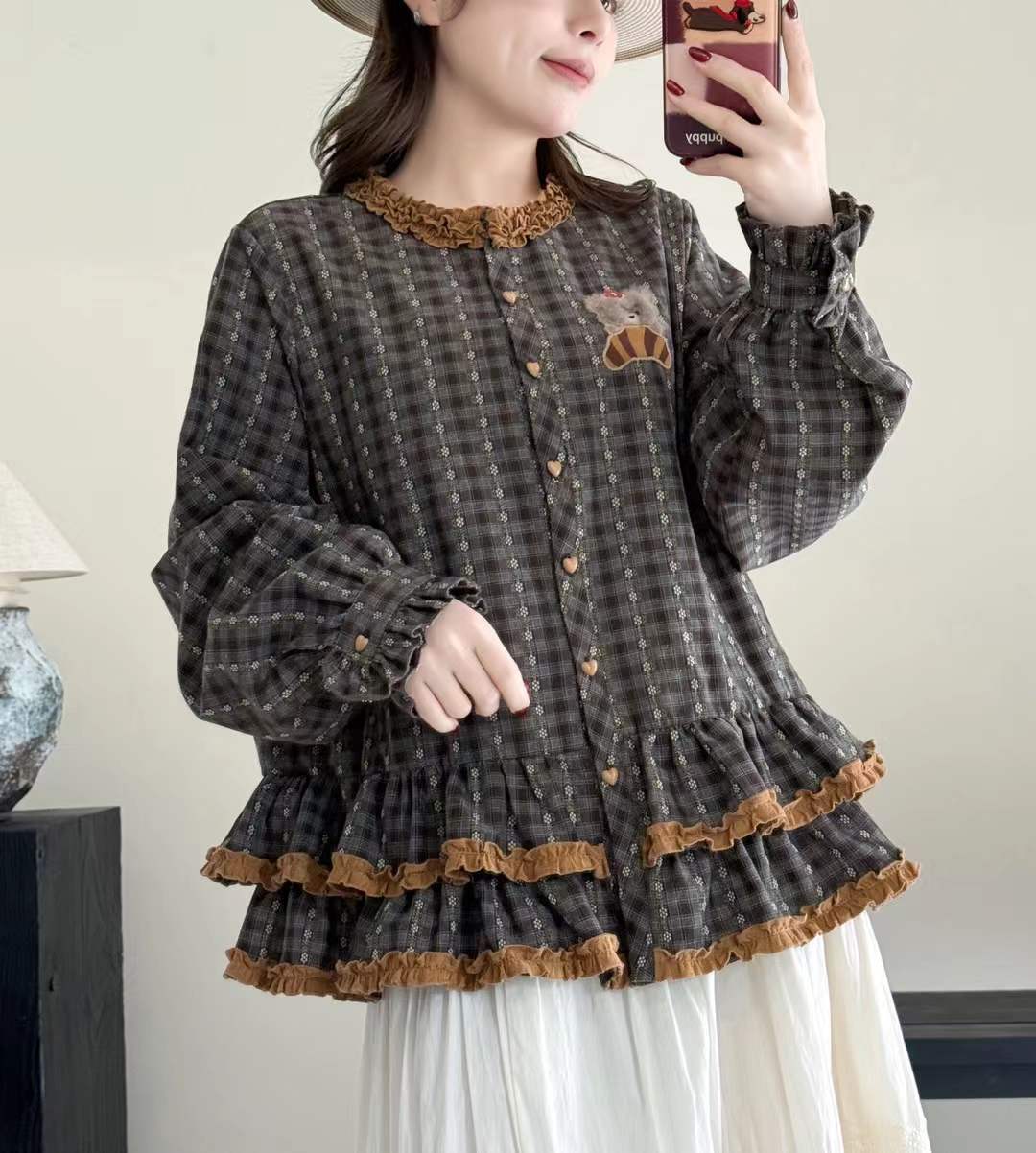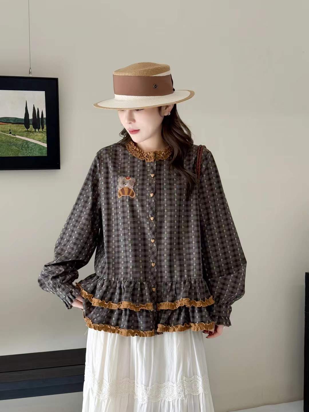 wcs-1833チェックデザイントップスシャツ・ブラウス【2026春新作】