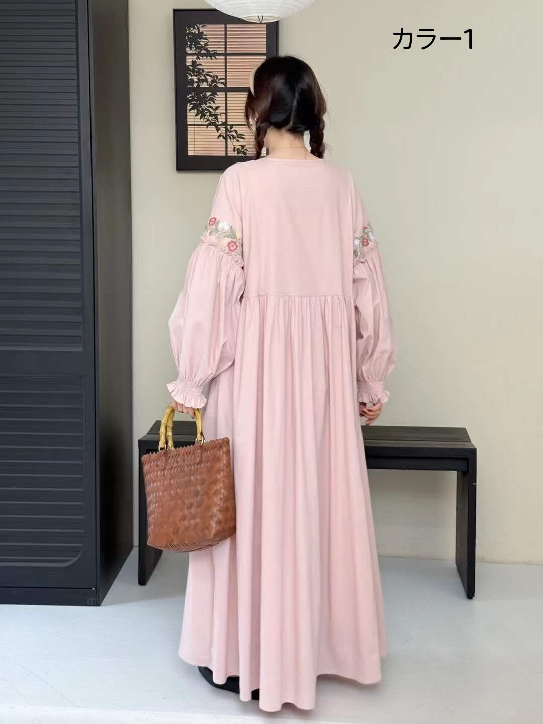 nl-1684 花柄デザイワンピースロング丈ワンピース【2026春新作】