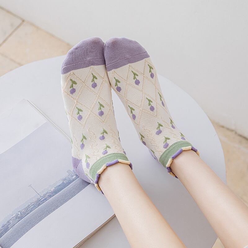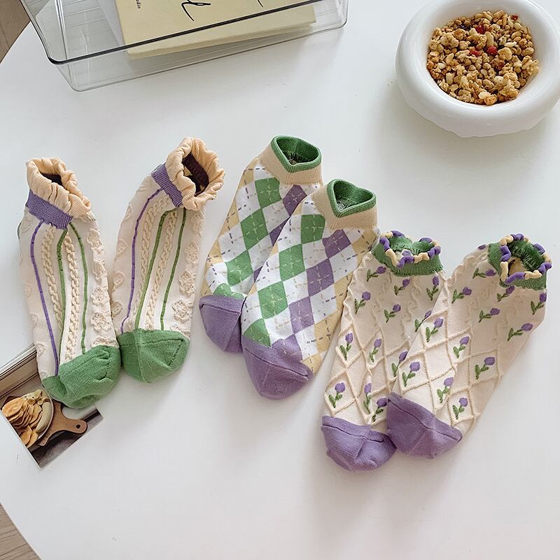 wz-310 綿混ケーブル編み花柄デザアンクレット【3点セット】