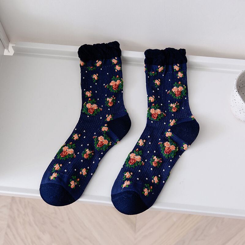 wz-314 綿混ケーブル編み花柄デザソックス【3点セット】