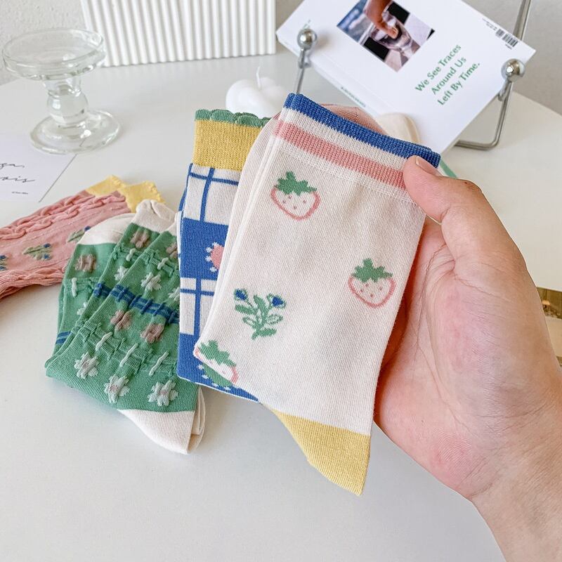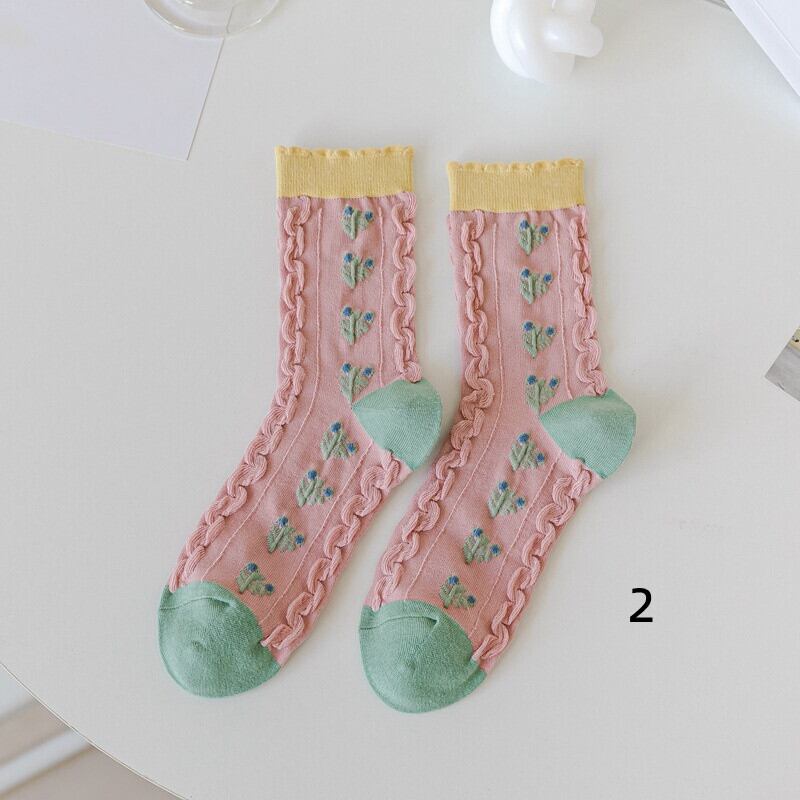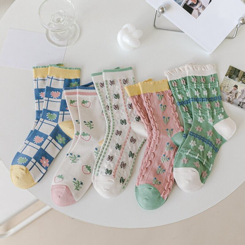 wz-484綿混 ポリエステル 花柄デザ ソックス【3点セット】