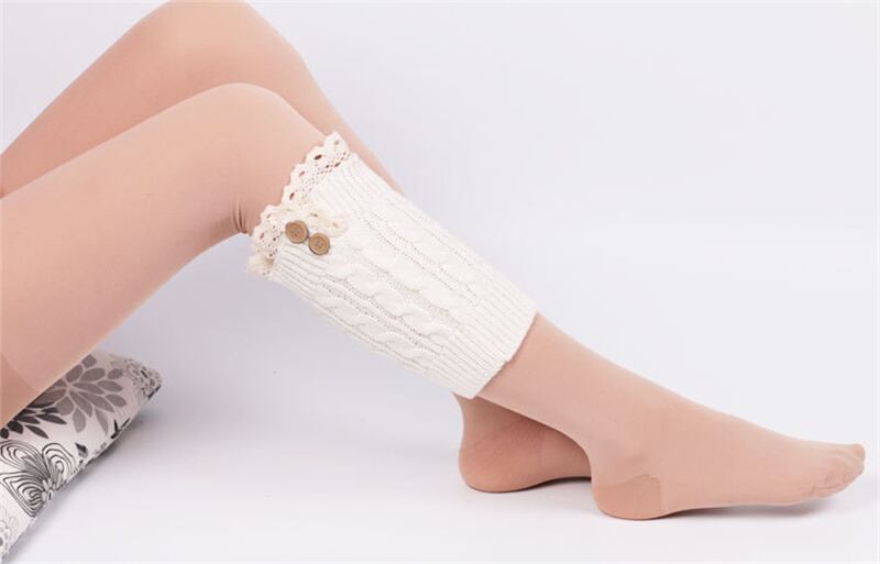 wz-502ケーブル編みカジュアル柄 レース&釦付きベ デザインレッグウォーマー【3点セット】