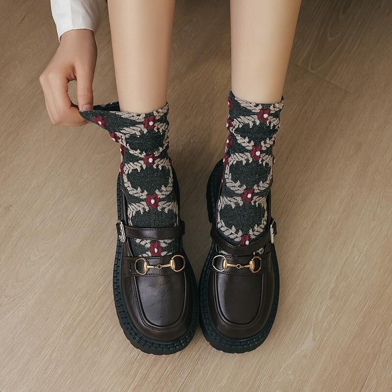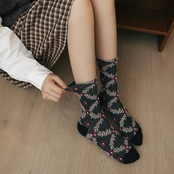 wz-528 綿混 ポリエステル 花柄レトロなデザイン ソックス【3点セット】