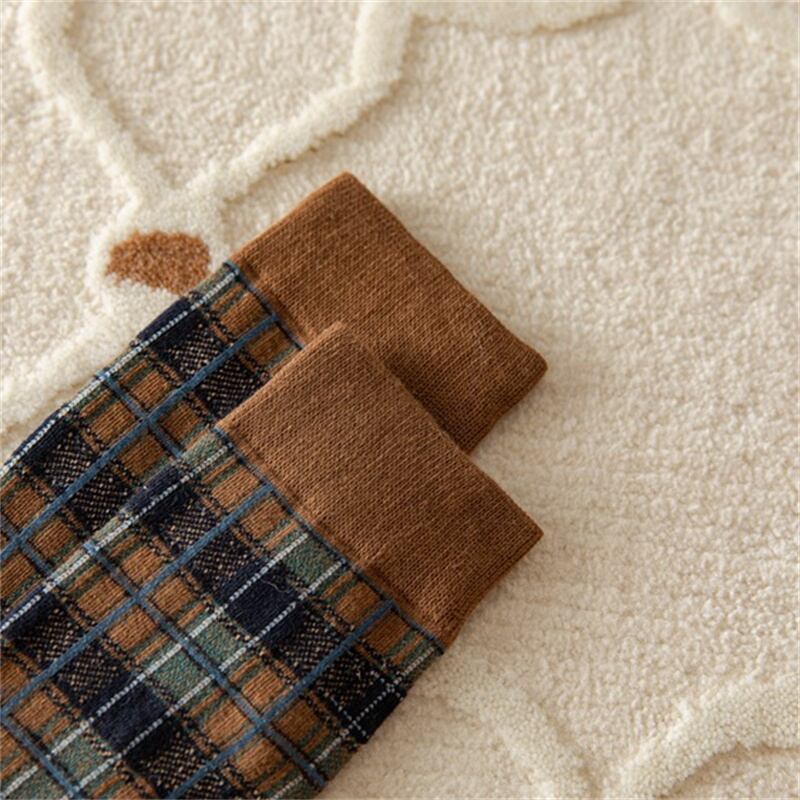wz-525 チェック柄 綿混カジュアル ハイソックス 【3点セット】