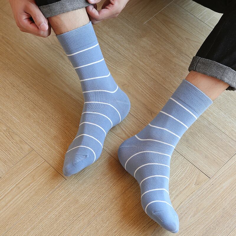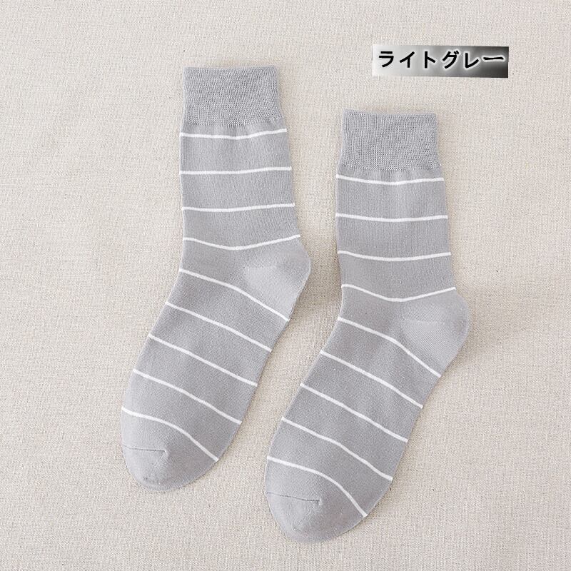 wz-543メンズ ストライプ柄 綿混 つま先クルーソックス【3点セット】