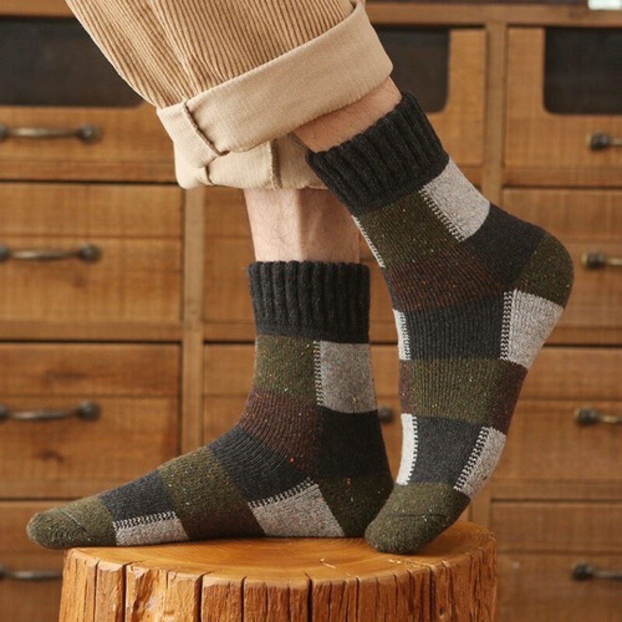 wz-553 ニットメンズ カジュアル柄 綿混 つま先クルーソックス【3点セット】