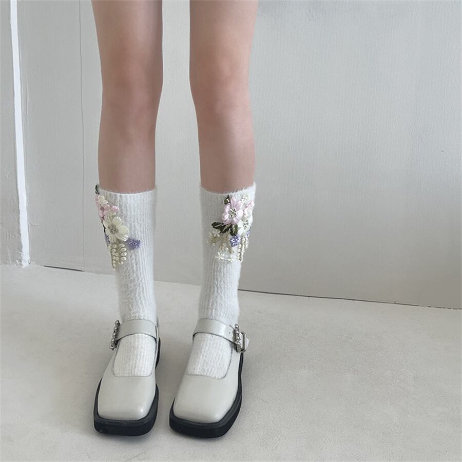 wz-638 刺繍 花柄イン ソックス【5点セット】