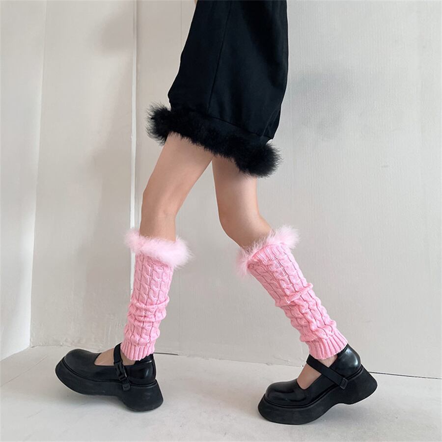 wz-640ふわふわした編み無地デザインレッグウォーマー【3点セット】