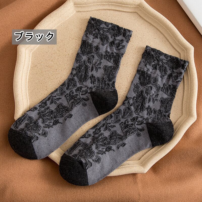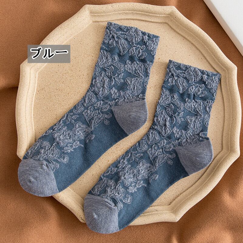 wz-615 綿混 ポリエステル 花柄レトロなデザイン ソックス【3点セット】