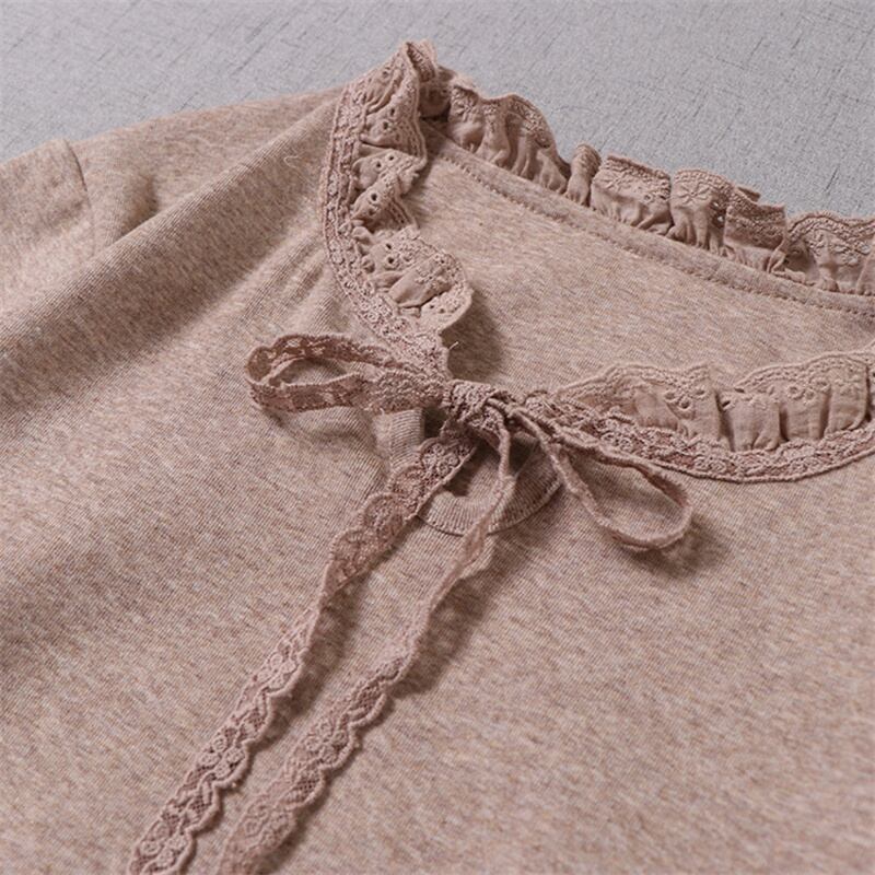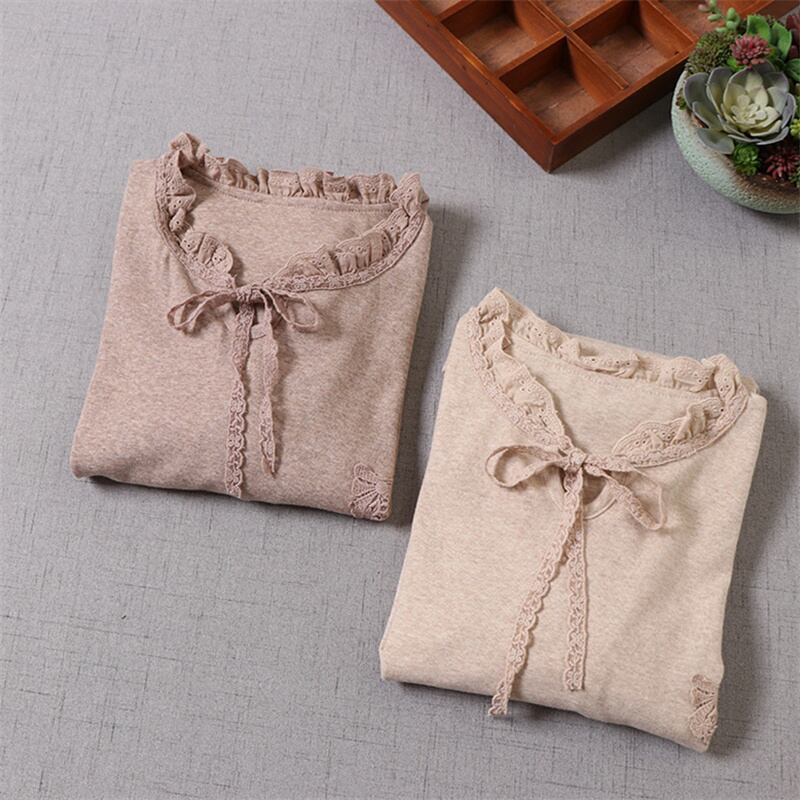 cc-382レース切り替え長袖 Tシャツトップス コットン