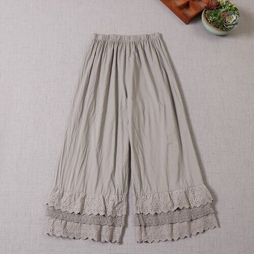 wk-115 ボトムスパンツナチュラル系刺繍レースワイドパンツオーバーオール 綿
