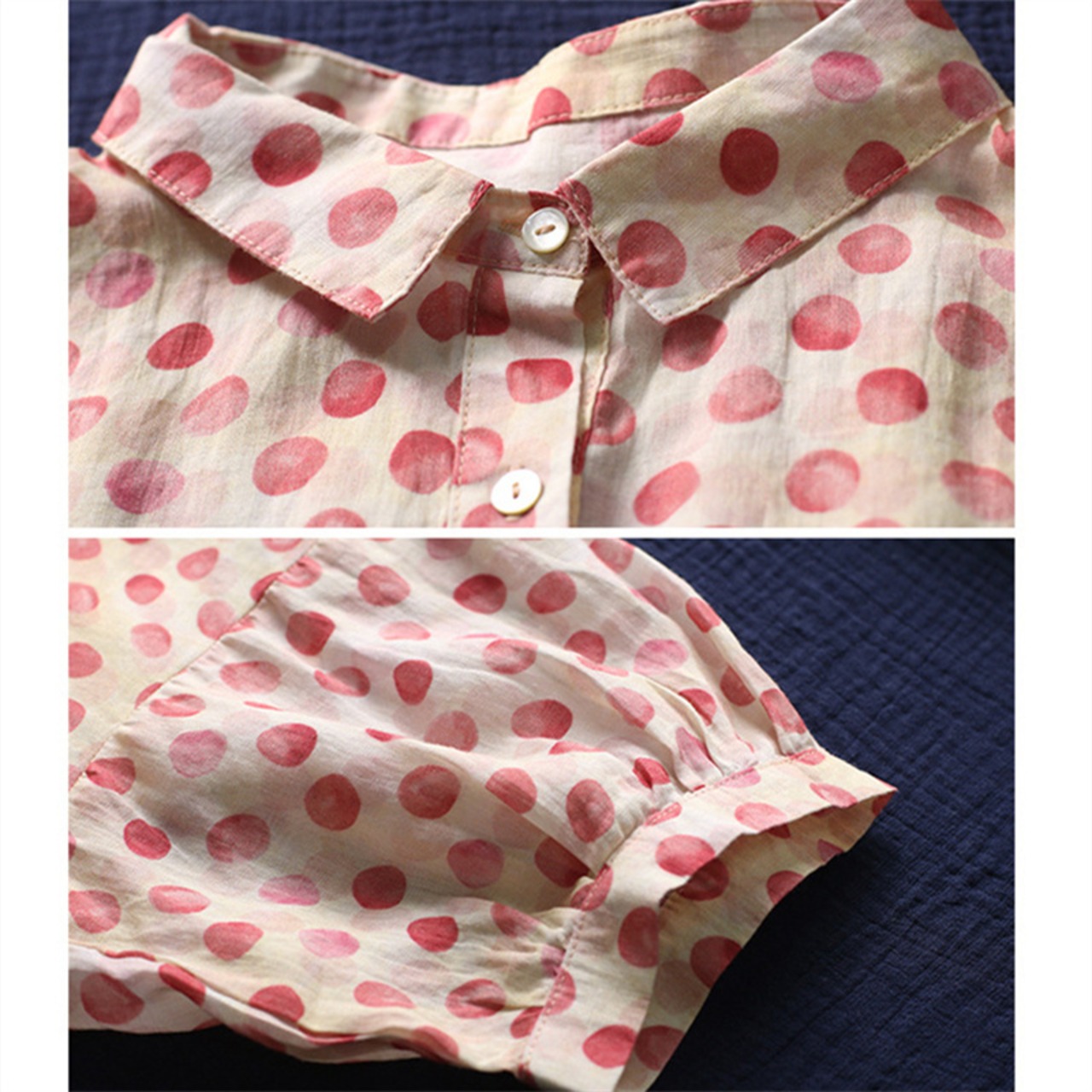 wcs-567水玉 シャツ トップス半袖 ブラウスカットソー ポリエステル混 綿