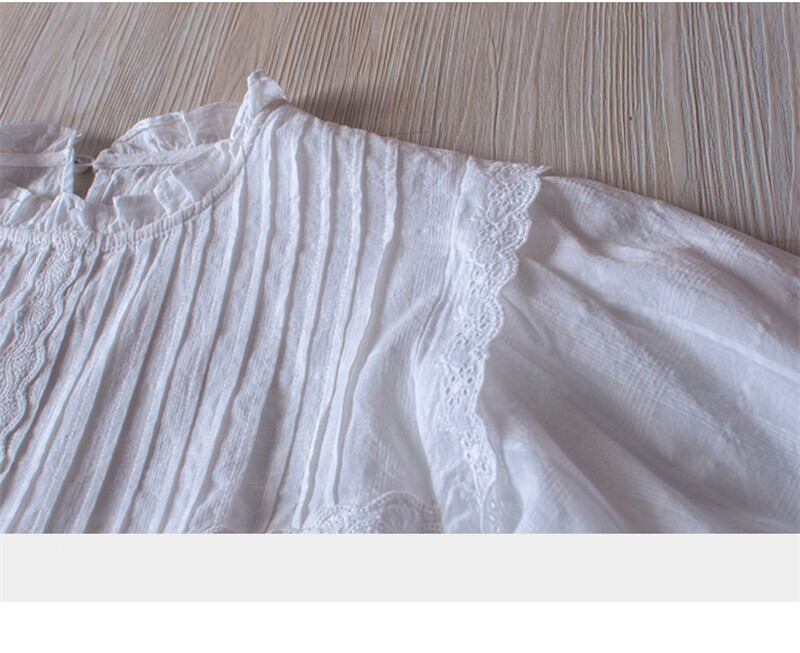 wcs-539半襟 レース切り替え長袖トップスブラウス コットン