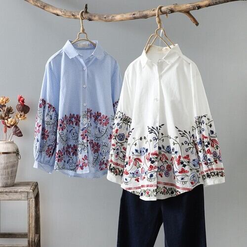 wcs-601ナチュラル系/刺繍/レトロフラワー柄プルオーバーシャツ・ブラウス