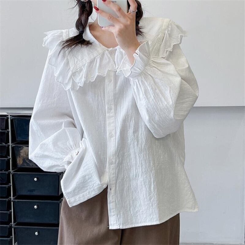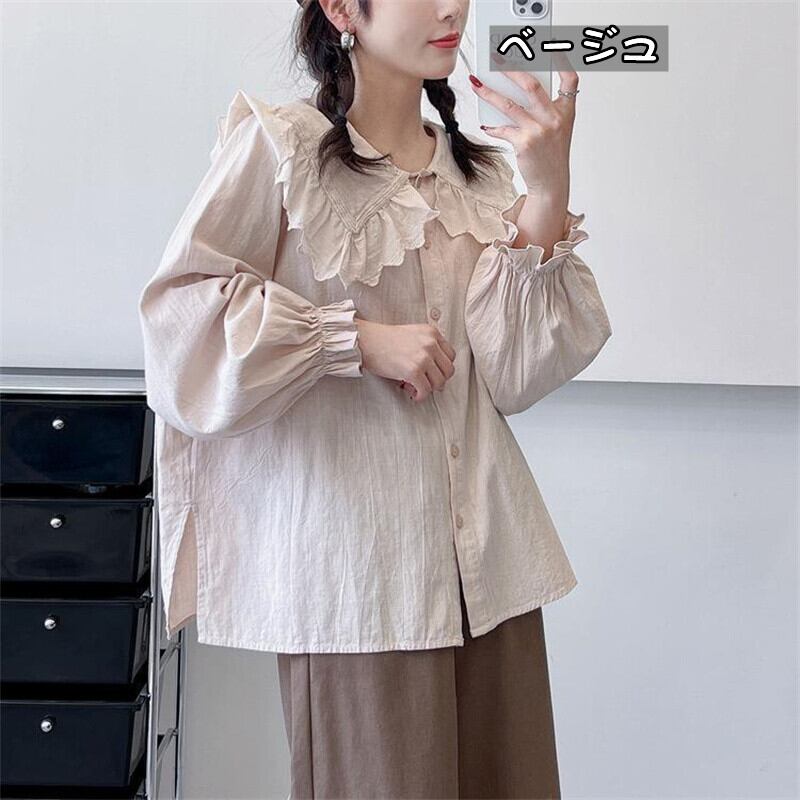 wcs-653刺繍 レース襟付き 長袖トップスブラウス コットン