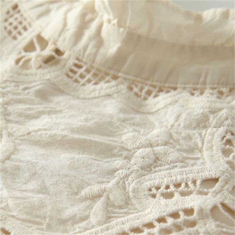 wcs-678レース切り替えノーカラー長袖 刺繍 Tシャツトップス コットン