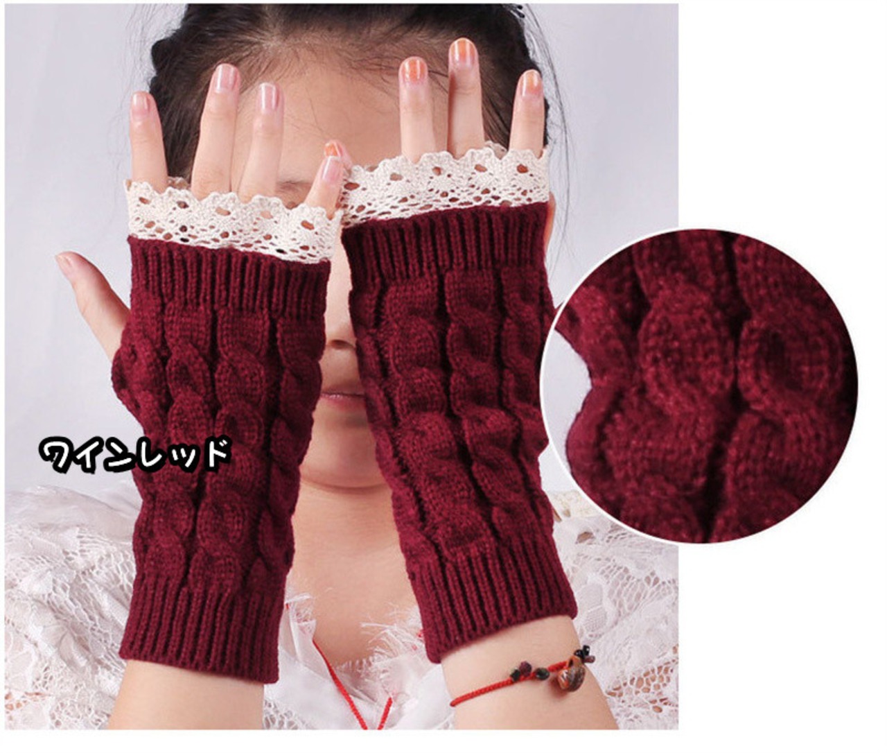 hat-173指なし手袋 指無手袋 フェイクファー付き ニット手袋 ニットグローブ ハンドウォーマー
