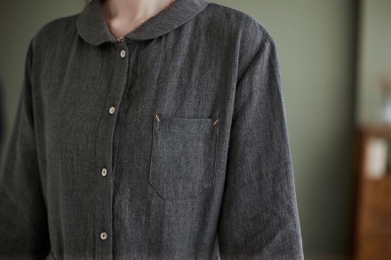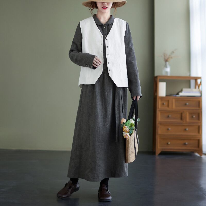 nl-831リネンワンピース長袖ワンピースaライン ゆる 体型カバー