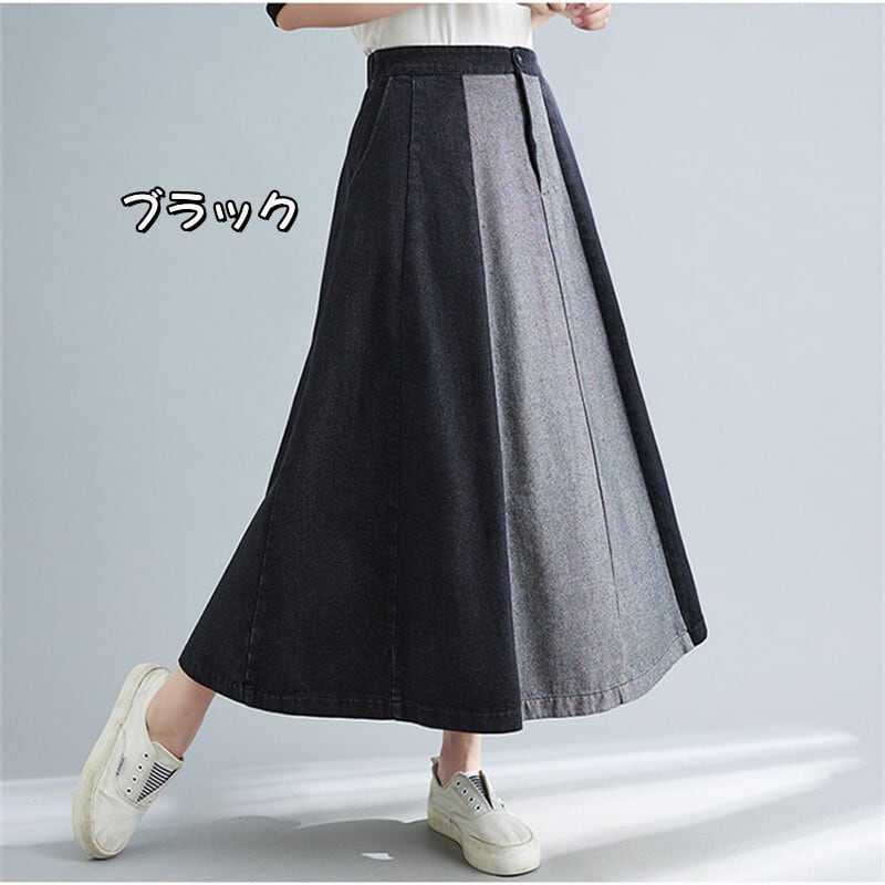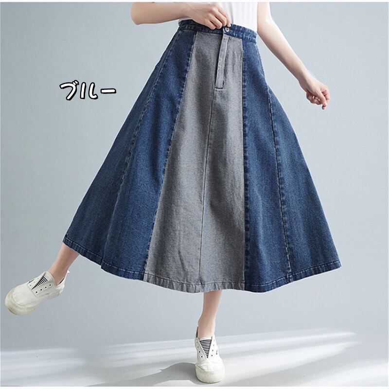 wq-324デニム スカート レンドスカート フレアスカート Aライン