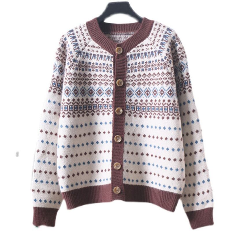 ks-145レトロなニットアウター長袖 ボタン ラウンドネック ニットカーディガン