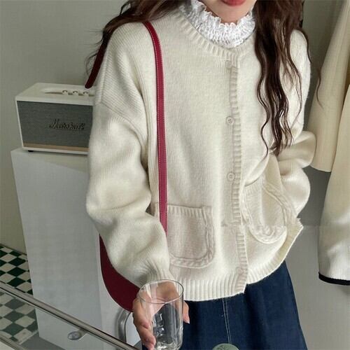 ks-142可愛いニット アウター長袖 ボタン ラウンドネック ニットカーディガン