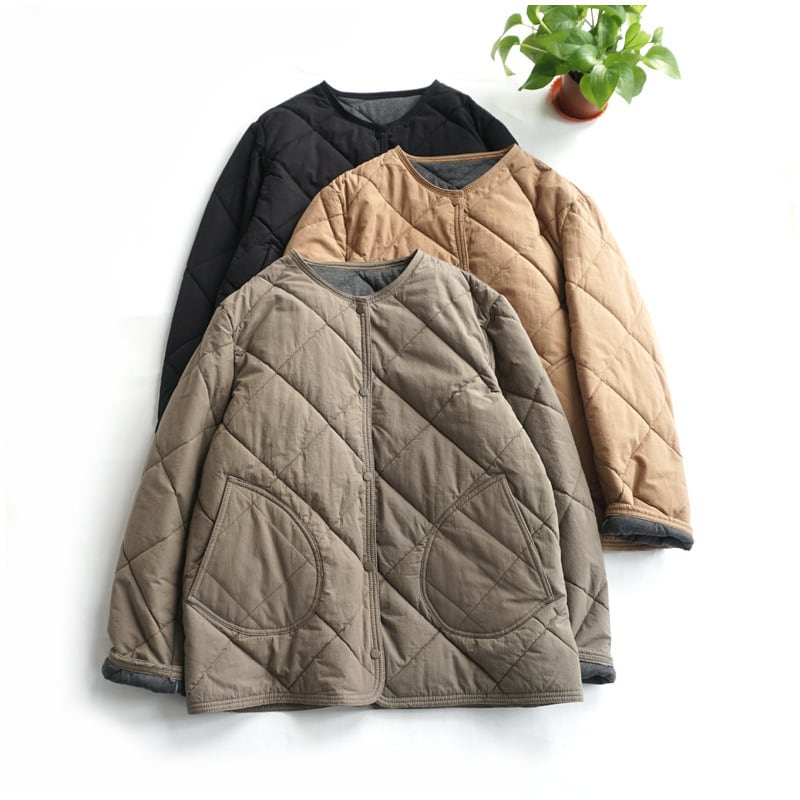 wm-066ノーカラーサイドスリット ドロップショルダー ダ ウンジャケット