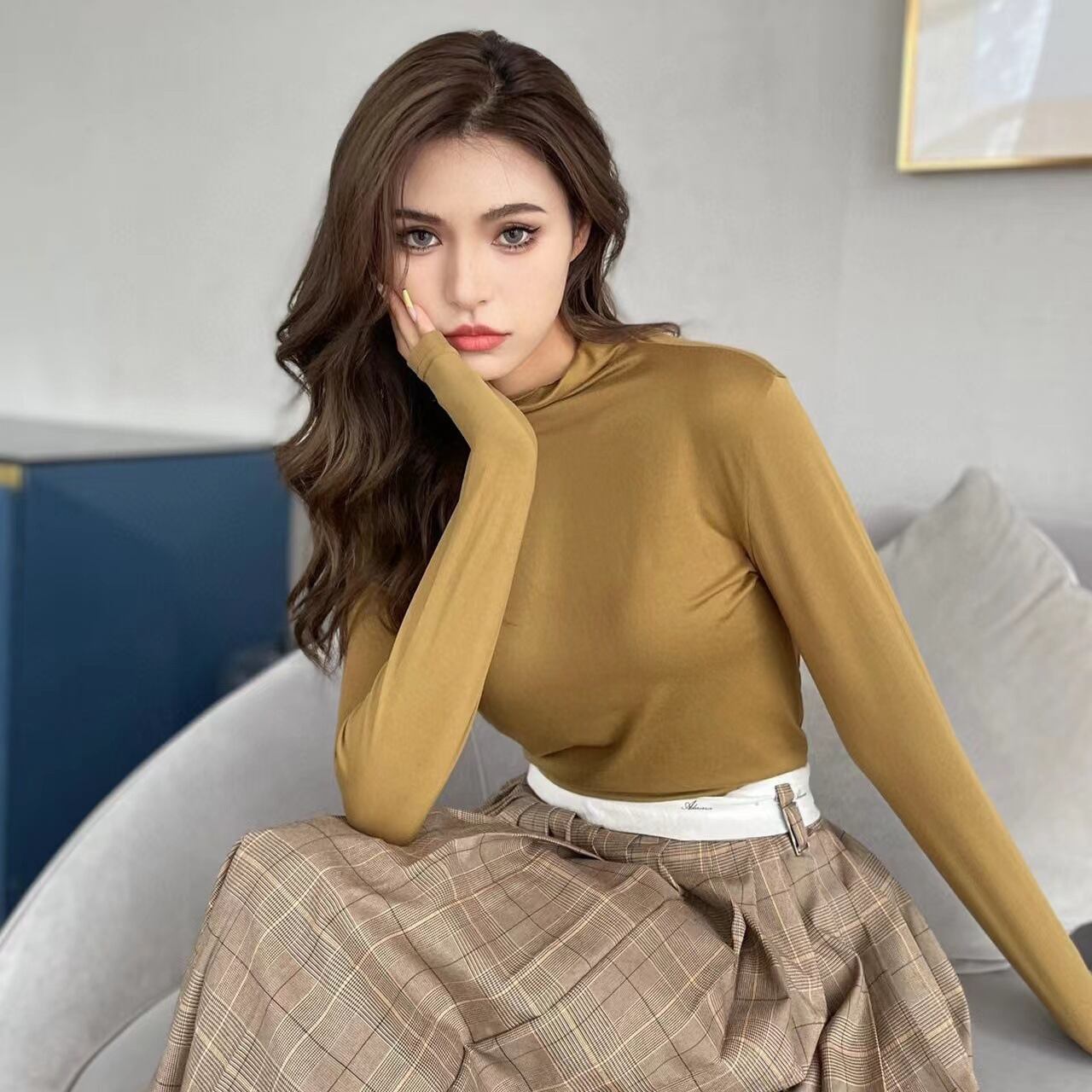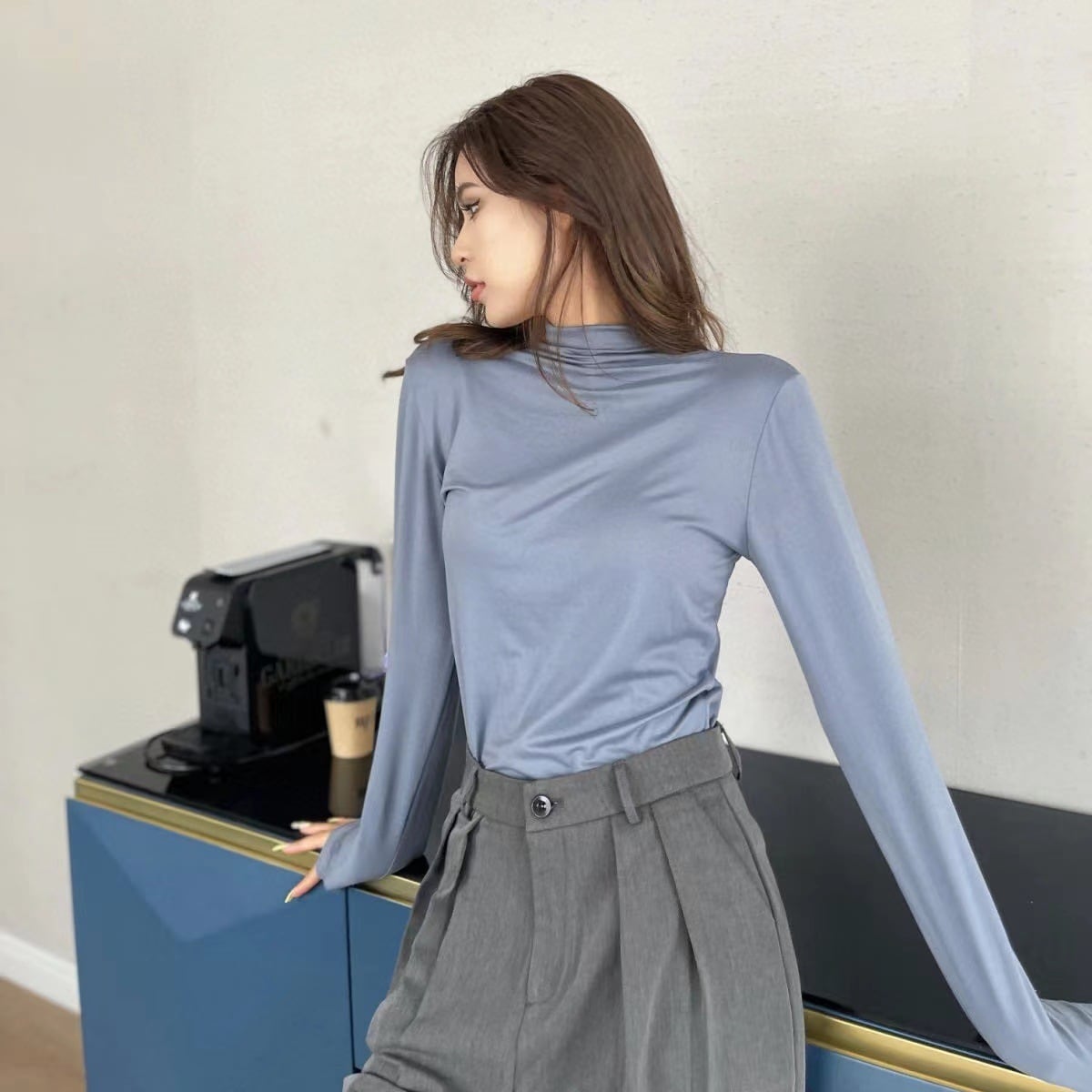 cc-389シャツハイネックの秋と冬インナー無地ストレッチ長袖トップス