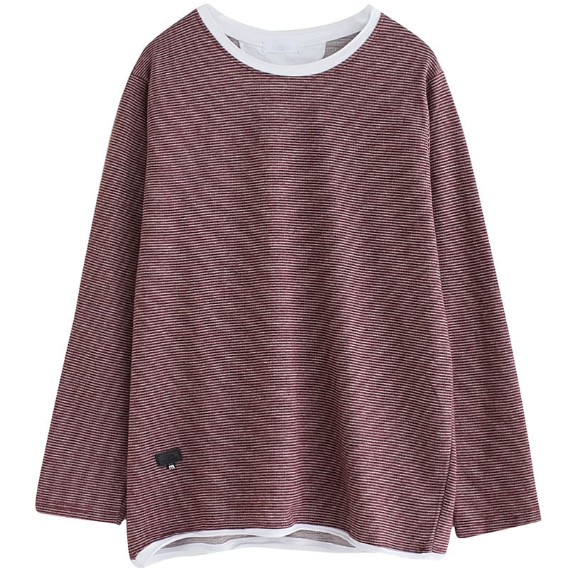cc-402ボーダーシャツラウンドネックの秋と冬長袖トップス