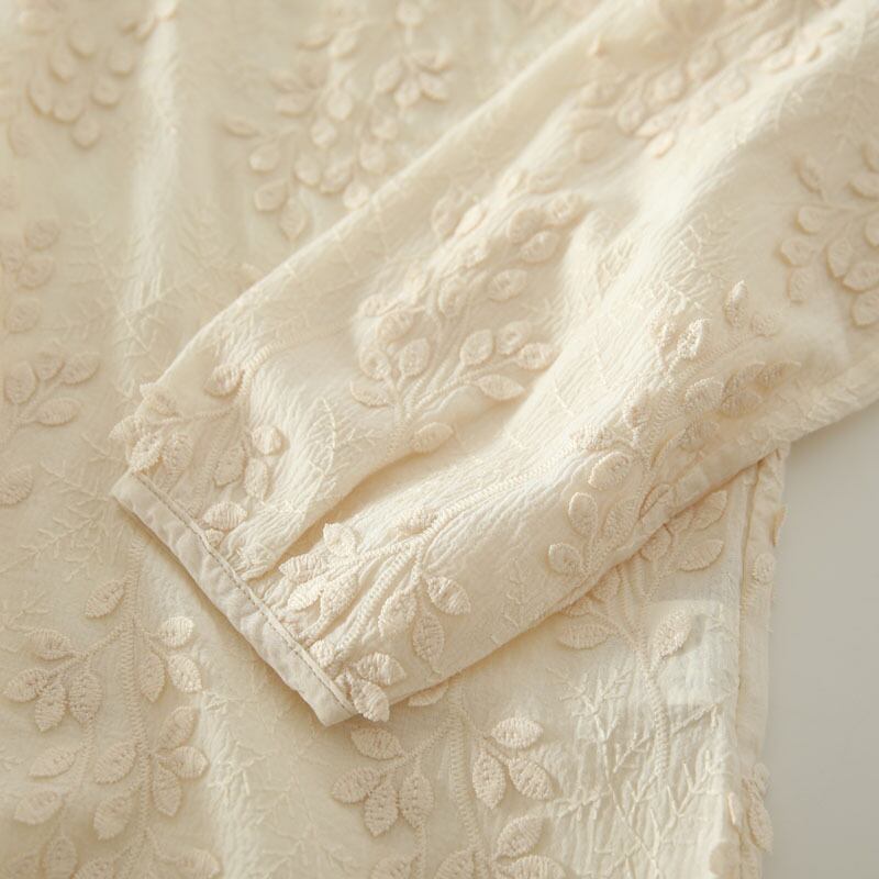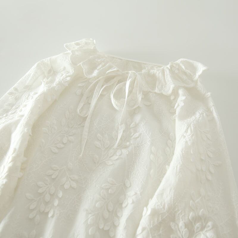 wcs-019葉柄フリルカラーレース刺繍トップス ブラウス長袖