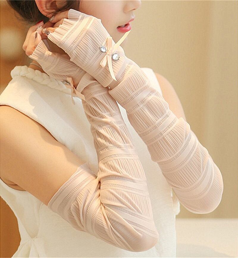 zh-658UV対策グッズ レーヨンアームカバー レディース パール付き
