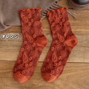wz-642 ルーソックス お洒落 華やか 靴下 柄ソックス レトロ 森ガール ソックス 可愛い ソックス クルー 綿混【3点セット】