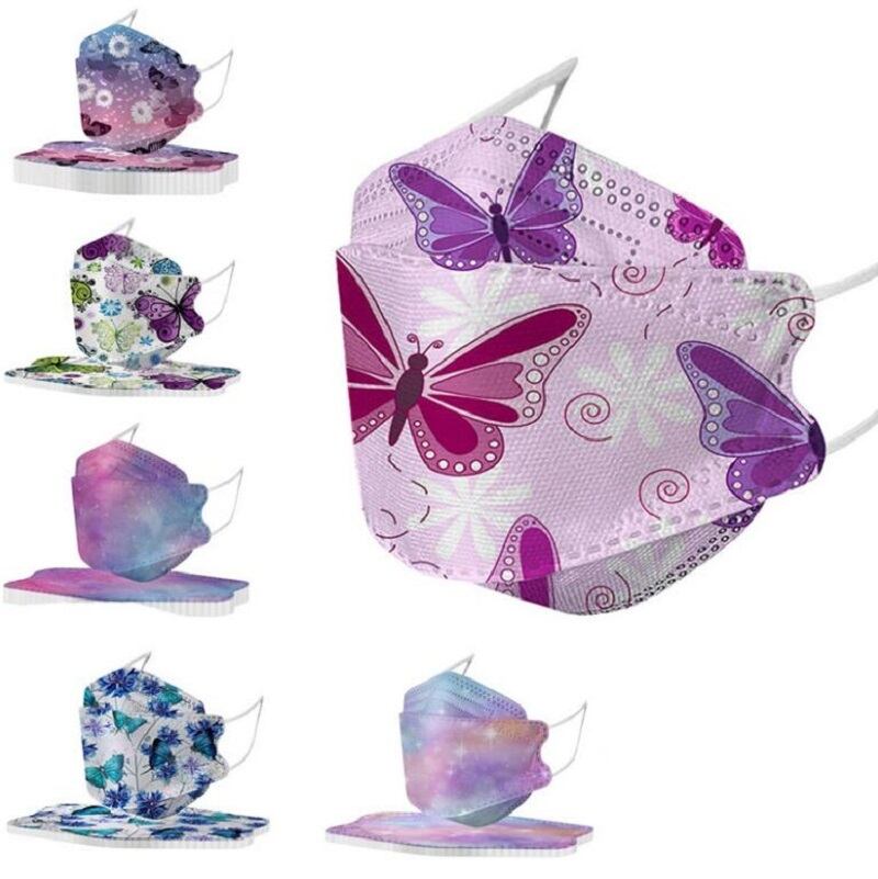 ms-244 使い捨て マスク 不織布 KF グラデーション カラフル 柳葉型 マスク 大人 柄入り ヒョウ柄 星空 バラ 蝶々 立体 4層構造 防塵