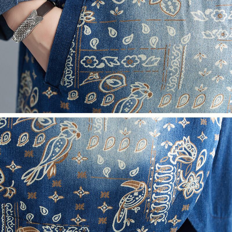 us-135 花柄 スタンドカラー デニムセット アップ カジュアル上下セット