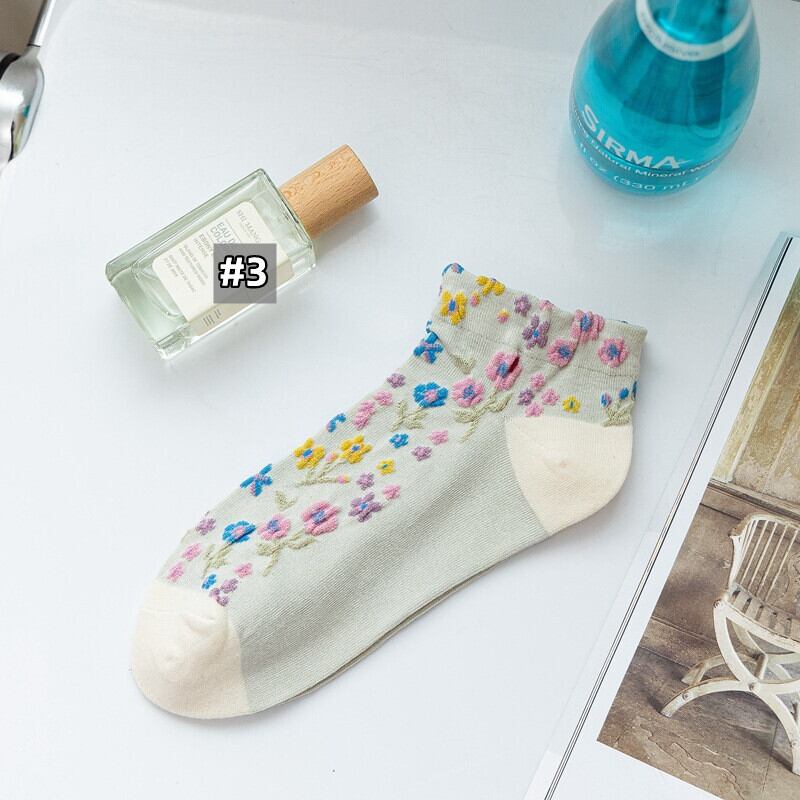wz-755 靴下 花柄 レトロなデザ ショートソックス くつした くるぶし【3点セット】