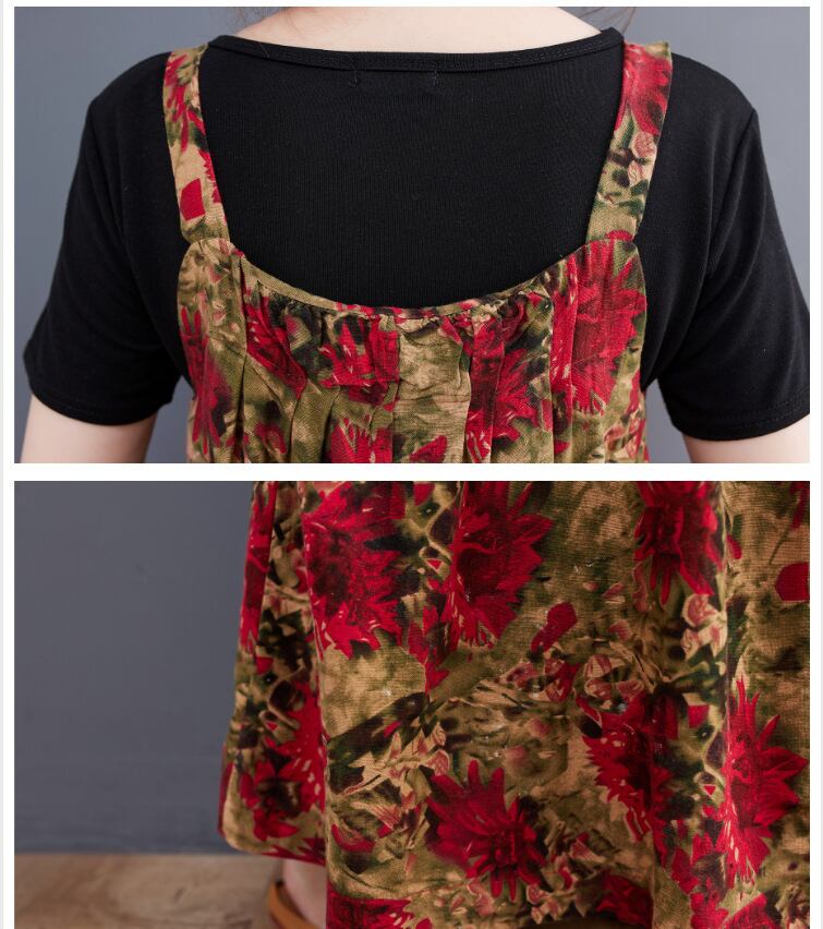 nl-920 ノースリーブ花柄 ワンピース 体型カバー ゆったり 膝丈 ミディアム丈 ゆったり コーデュロイ