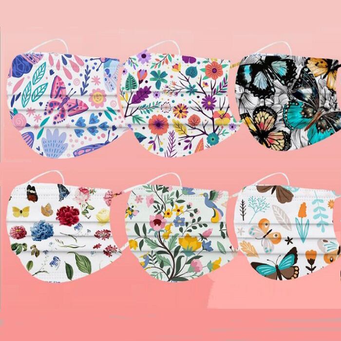 ms-163不織布マスク 大人 花柄 バラ 花見 50枚入使い捨て 三層構造 おしゃれ 使い捨て 飛沫 風邪 花粉 ウイルス対策 綺麗